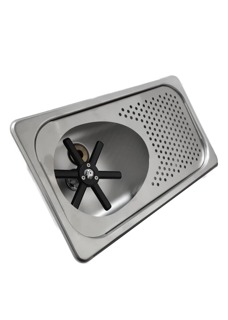 The stainless steel insert can be installed directly into the bench and connected to the mains and drain of your coffee machine.